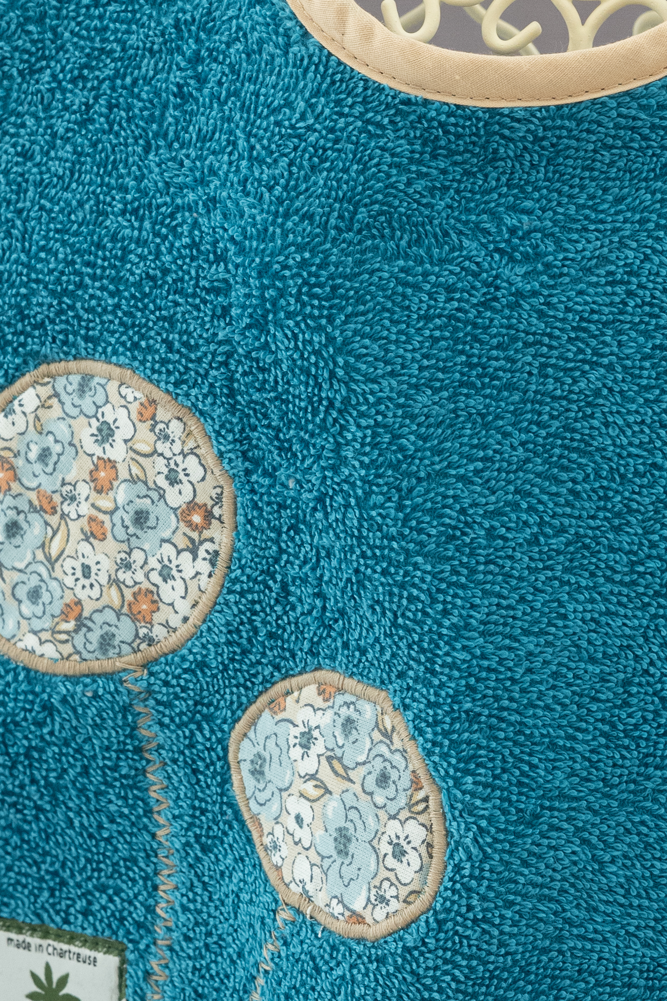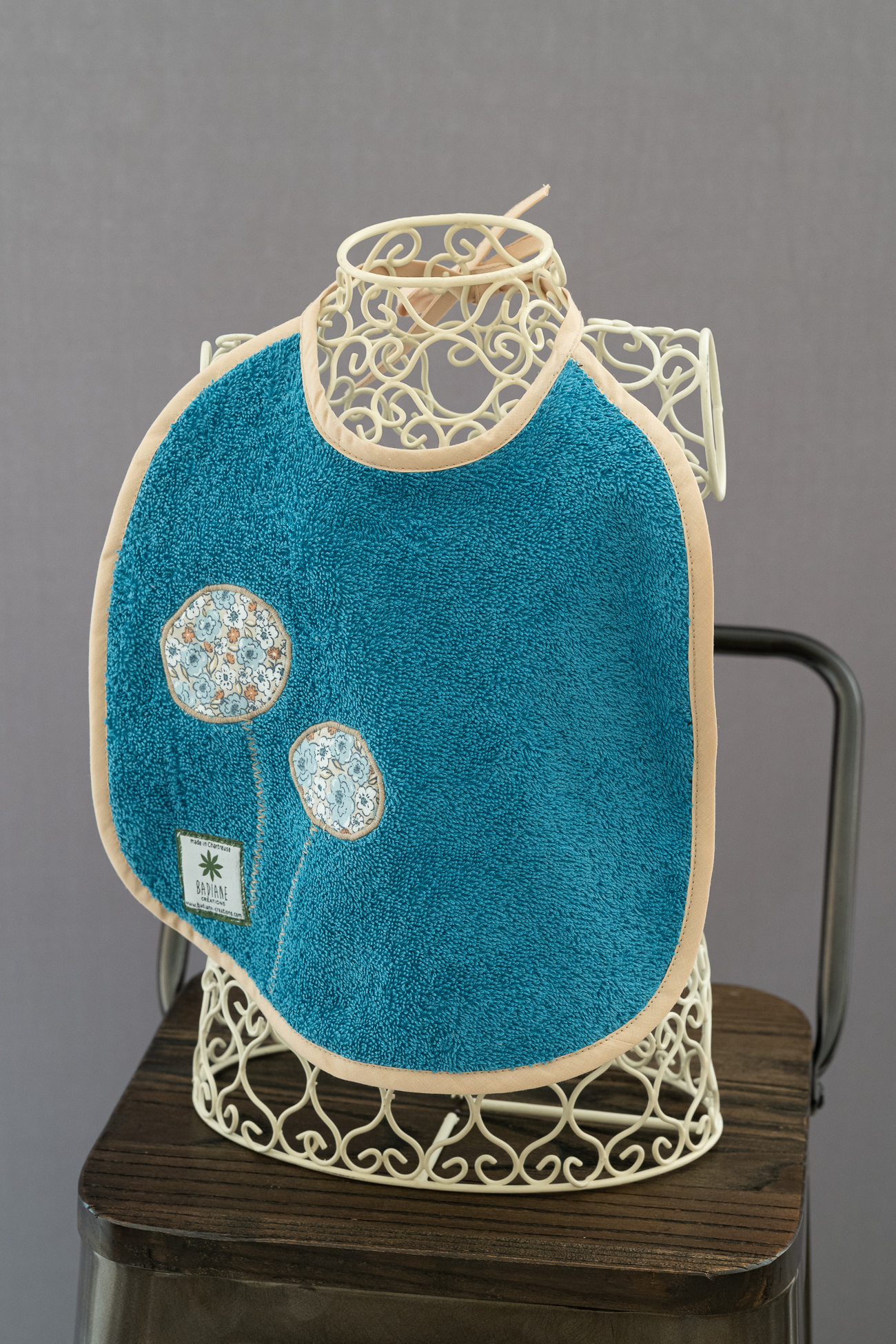 UGS : Bavoir turquoise/fleurs rondes beige Catégorie :