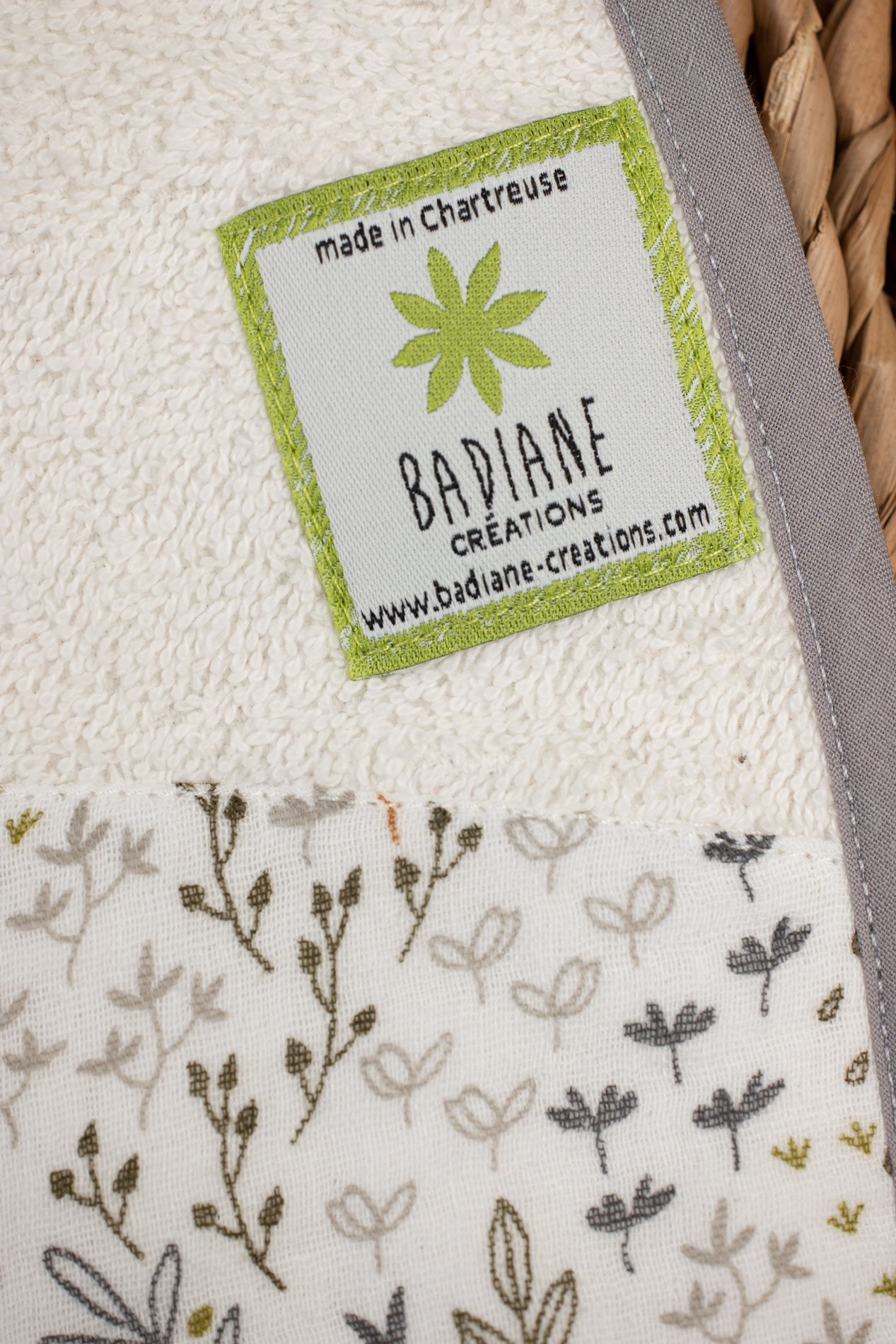 Composition : 100% coton éponge et 100% double gaze de coton bio et Oeko tex