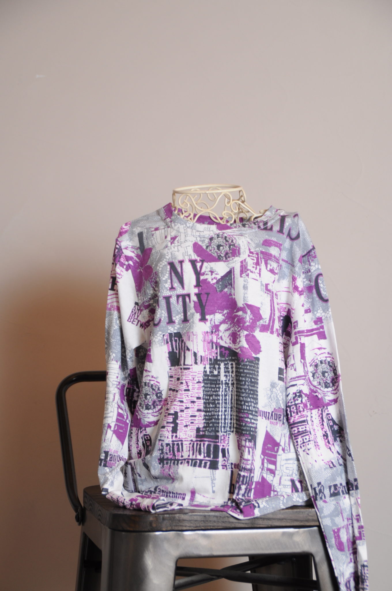 Tee-shirt manches longues, encolure arrondie, à la coupe féminine, légèrement cintré à la taille.